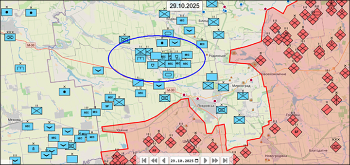 В частности, крупнейший украинский мониторинговый ресурс сообщает, что 29-го числа отмечалась концентрация русских штурмовых групп на северной и восточной окраинах Покровска. Это важное наблюдение, так как до последних дней основные наши продвижения отмечались на западной окраине города, двигаясь по которой русская пехота завязала бои за промзону на северо-западе города и выбила украинцев из неё. Теперь же противник видит наших штурмов и на востоке Покровска, что говорит о развале обороны внутри города.