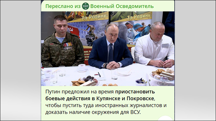 Путин из военного госпиталя призвал Киев подумать о судьбе своих военнослужащих. Скриншот с ТГ-канала "Военный Осведомитель"