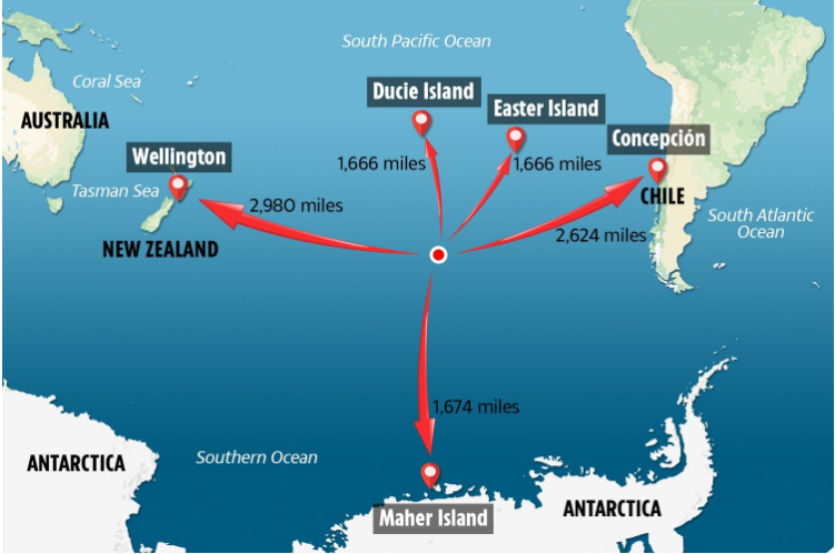 Как оказалось, ближайший к точке Немо атолл находится в 2688 километрах. Ещё дальше — обитаемые острова. Самым близким из них является остров Пасхи.