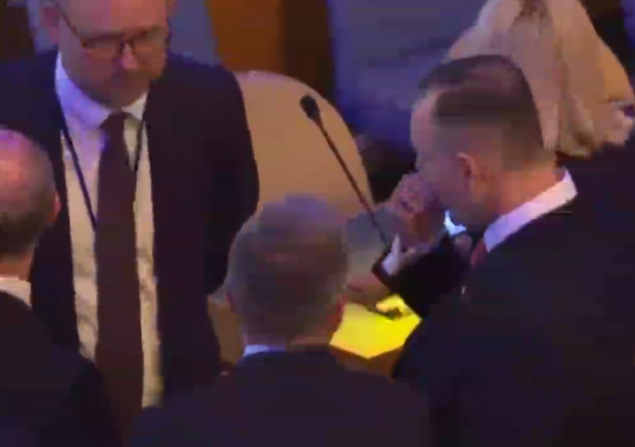 Такого накала страстей, видимо, не выдержал польский лидер Кароль Навроцкий. Журналисты увидели и запечатлели на камеру, как Навроцкий прямо во время общения участников сессии употребил, вероятно, "запрещёнку". Причём его однопартийцы вместо слов поддержки или каких-то оправданий лишь заявили, что употреблённое президентом Польши вещество — явно не табак.