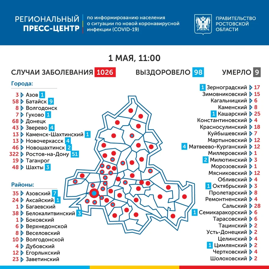 Уже девять жертв и свыше тысячи заражённых: Коронавирус в Ростовской области – новости на 1 мая [инфографика]