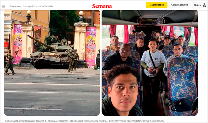 Наёмники в украинском автобусе (фото справа). Они не знают, куда их везут. Сайт semana.com, скриншот страницы
