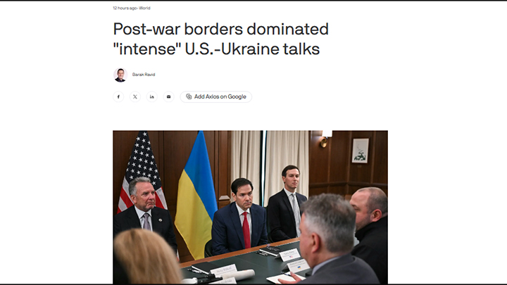 Axios: в "интенсивных" переговорах между США и Украиной доминировала тема послевоенных границ. Скриншот: страница сайта издания