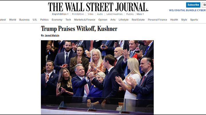 Трамп был очень доволен этой парочкой – Стивом Уиткоффом и Джаредом Кушнером. Скриншот: The Wall Street Journal
