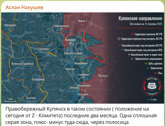 Ряд источников продолжали настаивать: враг продолжает попытки прорыва. Есть незначительные успехи. 9 декабря Лебедев сообщил, что ситуация в районе Купянска стремительно осложняется, но остаётся управляемой, переходя в статус реальной угрозы: