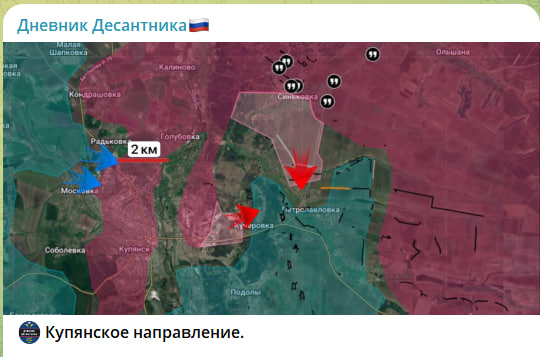 Вскоре стали появляться сообщения о начале контрнаступления противника на Купянск. Первоисточником были украинские каналы, ссылающиеся на слова главкома ВСУ Сырского. Позже "Военная хроника" сообщила о неподтверждённой информации, что враг снял до пяти батальонов с Черниговской области и отправил на прорыв нашей обороны.