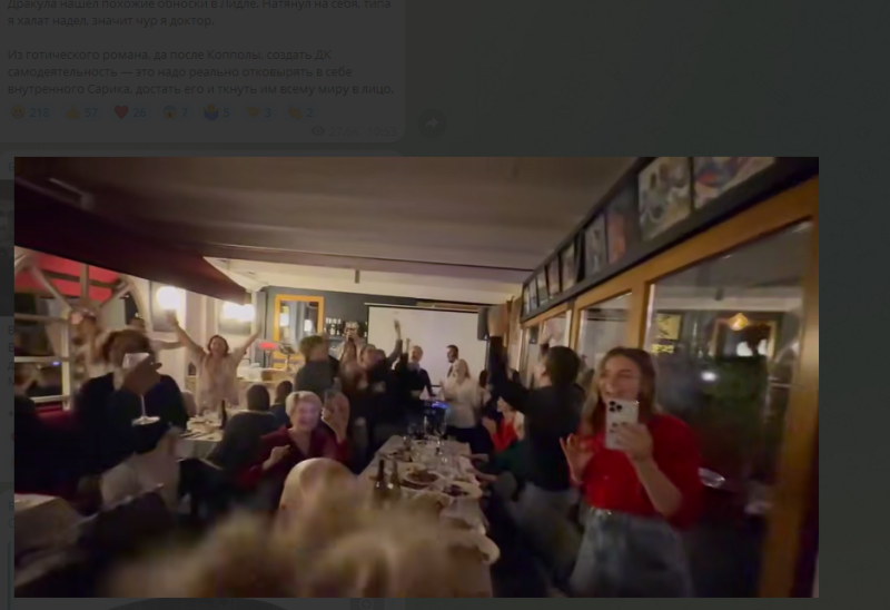 Юбилярша и гости громко горланили "Седую ночь", хотя в Прибалтике вообще-то русские песни запрещают. Но беглые релоканты, как всегда, старательно не замечают русофобии и делают вид, что их это никогда не коснётся.