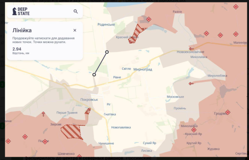 Второй момент: украинские ресурсы ещё 29 октября признали, что русская армия перерезала основную трассу на Покровск из Павлограда. Например, аналитики Deep State, подконтрольные Банковой, поместили карту, согласно которой "серая зона" в самом населённом пункте расширилась до центра и северных районов. Противник отметил: ВС России продвинулись к югу и северо-востоку от города, обходя Мирноград, - расстояние между "серыми зонами" вокруг агломерации сократилось до менее чем 3 км.