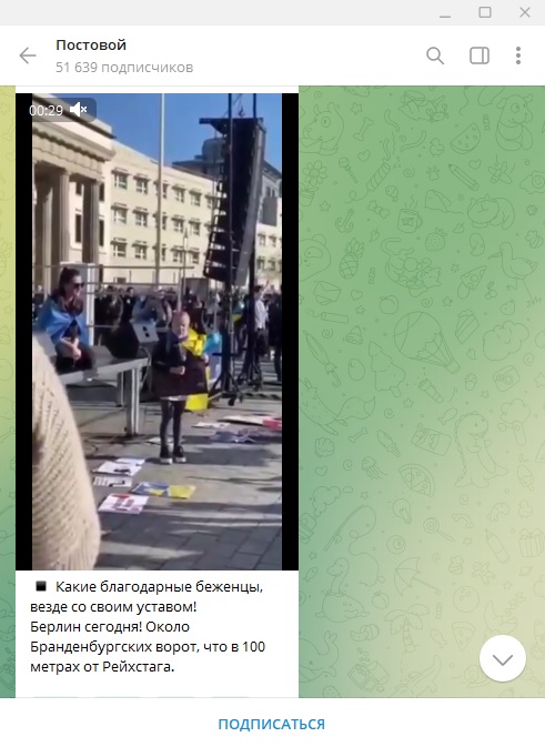 Украинские беженцы устроили в Берлине акцию против России, прикрывшись истеричной девочкой. В 100 метрах от Рейхстага прозвучали нацистские лозунги.