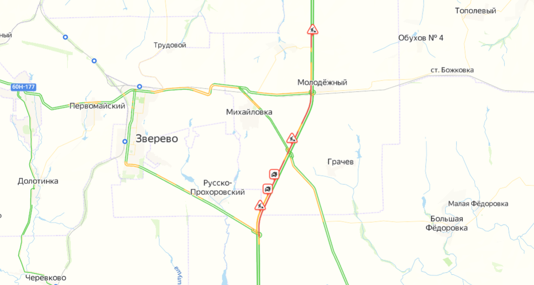 Согласно информации сервиса Яндекс.Карты, серьёзный затор образовался в районе Зверево в сторону Ростова. Пробка начинается в районе 956-го километры трассы и начинает уменьшаться на 961-м километре.