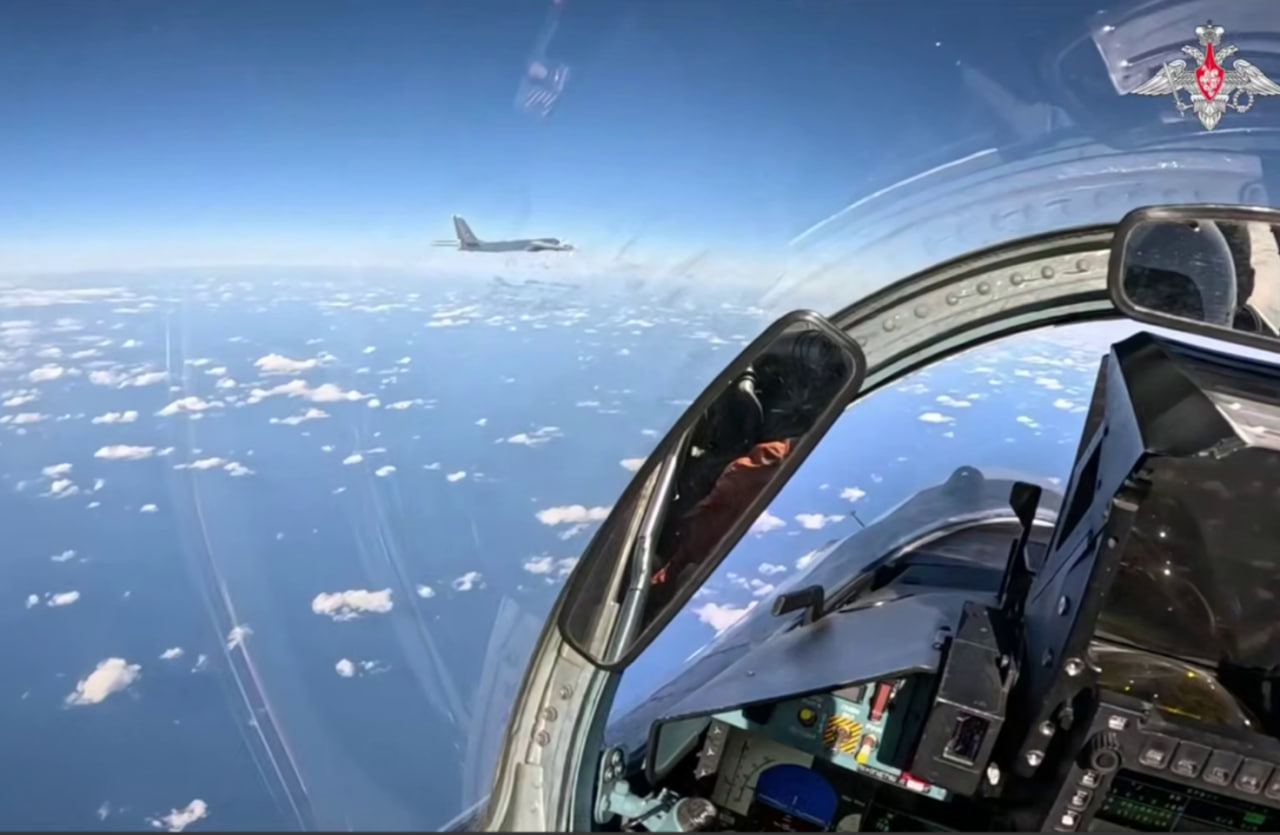 И Ту-95МС не просто так покружили над Москвой. Они отправились к нейтральным водам Японского моря, где в общей сложности находились свыше 11 часов. Помимо бомбардировщиков "привет" Санаэ Такаити также передали русские истребители Су-35с и Су-30см. Как это было, Министерство обороны России показывало на видео.